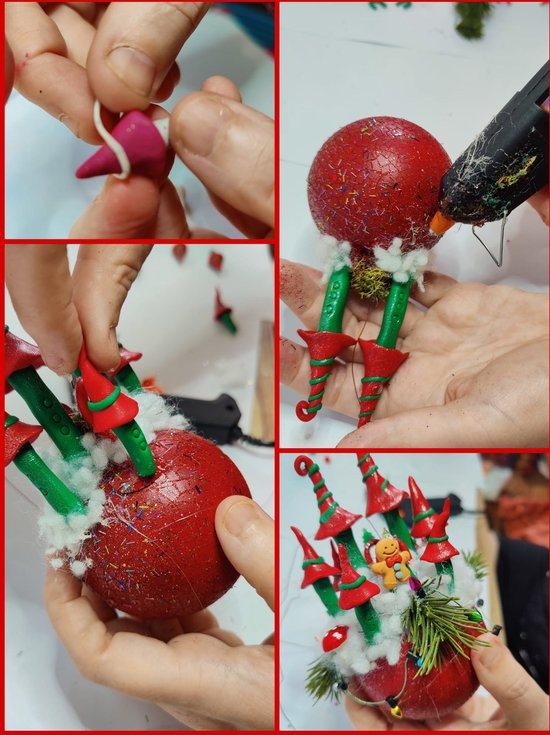 Wie wil er nou niet zo een bijzondere kerstbal decoratie, met traditionele kerstkleuren en veel leuke mini's, zoals een sneeuwpop, kerstman en Peperkoekmannetje. Aan de dennentakjes komt een leuke string nep kerstlichtjes. Erg leuk om ook samen met kinderen te maken! Fantasyatelier - Kasteelbol Kerst DIY