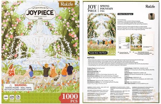 De Rolife PT001 Afternoon Fountain is een 2D-legpuzzel met 1000 stukjes. Deze puzzel is bedoeld voor gevorderde legpuzzelaars van alle leeftijden. De afbeelding is een schilderij van de kunstenaar Guli Zhu. Het betreft een zomers tafereel in fijne pasteltinten van een fontein en picknickende mensen. De kwaliteit van de puzzelstukken is door de lasertechniek uitstekend en wordt als soepel ervaren.