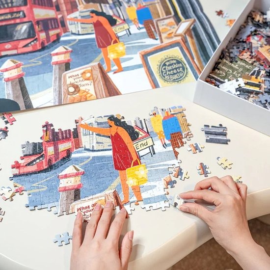 Behalve de dubbeldekkerbus spreekt de dame op de voorgrond erg aan, net als de herkenbare gevels. Als de puzzel verwerkt is, zijn er minimaal 10 uur verstreken en is de legpuzzel 50 centimeter breed en 75 hoog. In de doos zit een poster die een afbeelding op ware grootte is van de puzzel. Dit vergemakkelijkt het zoeken van de puzzelstukjes. Eveneens krijgt de puzzelaar een postkaart met afbeelding van het schilderij die verstuurd kan worden als bijvoorbeeld verjaardagskaart.