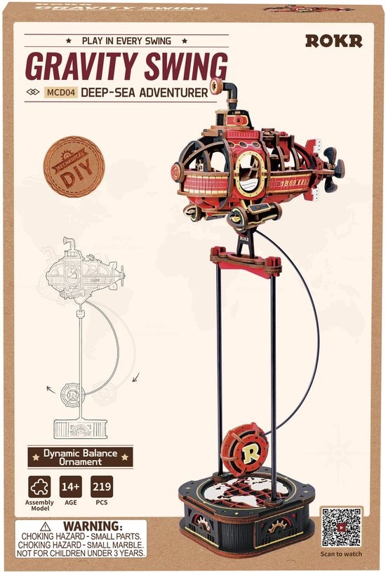 De MCD04 ROKR Deep-Sea Adventurer Pendulum Balance Toy 3D Puzzle is een houten bouwpakket voor volwassenen kinderen vanaf 14 jaar. Stap in een wereld vol fantasie met deze vrolijk rode onderzeeër. Met zijn cartooneske uitstraling, sierlijke vinnen en nieuwsgierige periscoop lijkt hij zo uit een stripverhaal te zijn gevaren. Een geheime lade, stoer kompas en een avonturier aan het roer maken de reis nog spannender. Een uniek decorstuk vol karakter!