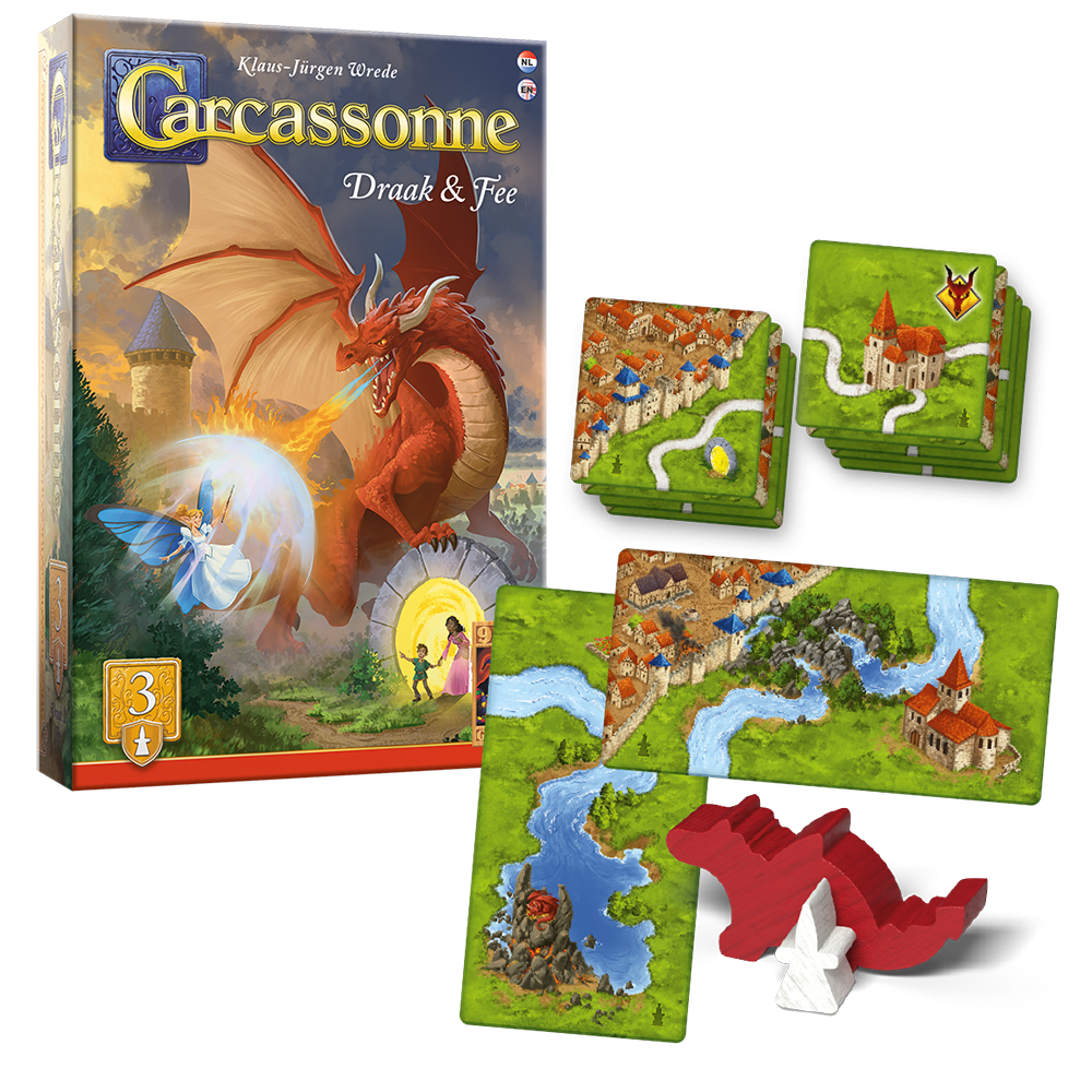 In deze uitbreiding op Carcassonne zwerft een hongerige draak door het landschap. Plan vooruit om uit de buurt van de draak te blijven, roep de fee op ter bescherming of gebruik het magische portaal om verloren gebieden terug te winnen.