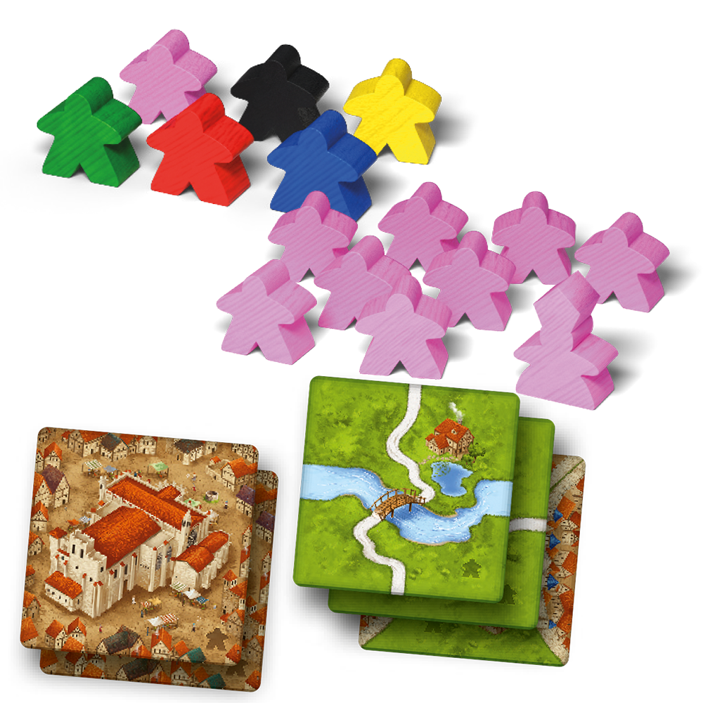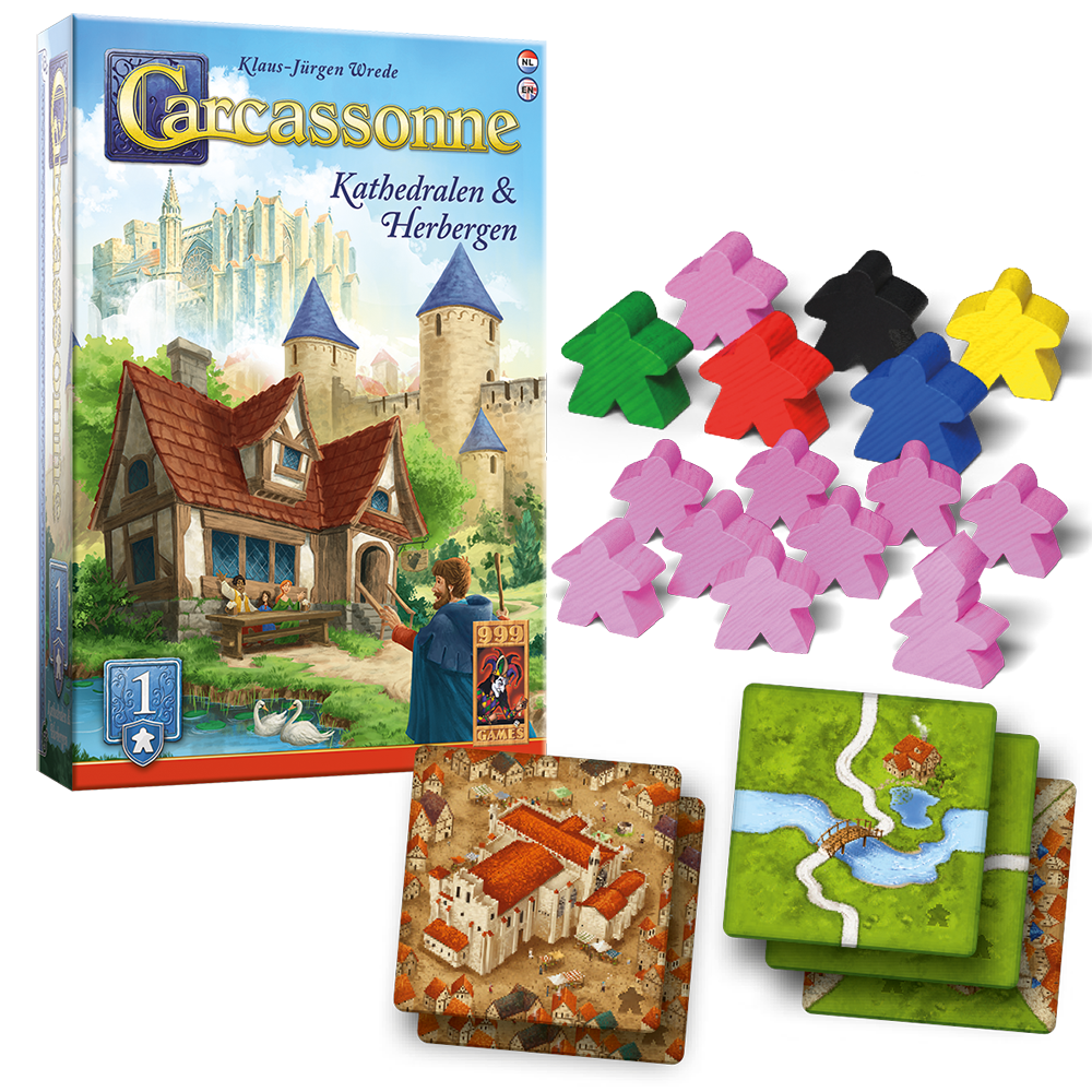 In deze uitbreiding op Carcassonne maak je je wegen en steden nog mooier door er nuttige herbergen en kathedralen in te zetten, die nog meer punten opleveren! De grote meeple geeft je daarnaast extra kracht om meerderheden te behalen en dankzij de roze meeples kun je nu ook met 6 man spelen!