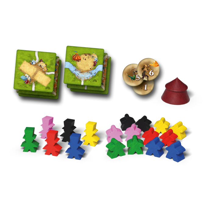In deze uitbreiding op Carcassonne komt een reizend circus het land bezoeken. Laat je meeples aan dit grote spektakel meedoen en vorm een imposante piramide. Is de circusdirectrice in de buurt, dan krijg je nog meer punten.