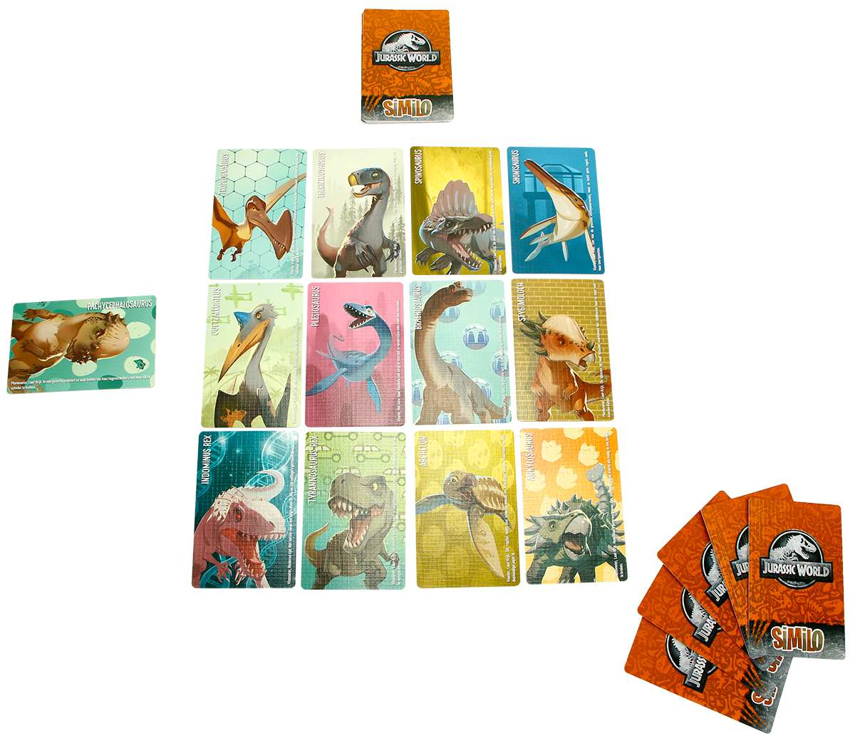 In deze editie van Similo moet je gezamenlijk uit 12 dino’s de juiste vinden. Per beurt geeft de spelleider zonder te praten een hint met een nieuwe kaart. Heeft de dino die je zoekt een vergelijkbare vorm of dezelfde kleur? Of juist niet? Alleen als je de hints snapt, kun je Similo winnen.